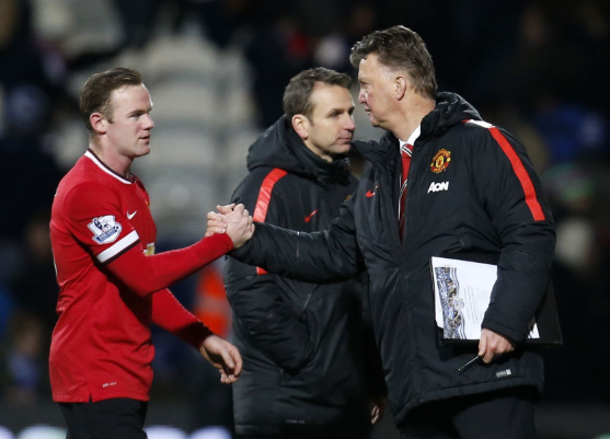 曼联在失去耐心并解雇了莫耶斯后,任命了范加尔。范加尔走过来,将双臂伸到与肩同高的位置,开始向鲁尼示范如何罚点球。